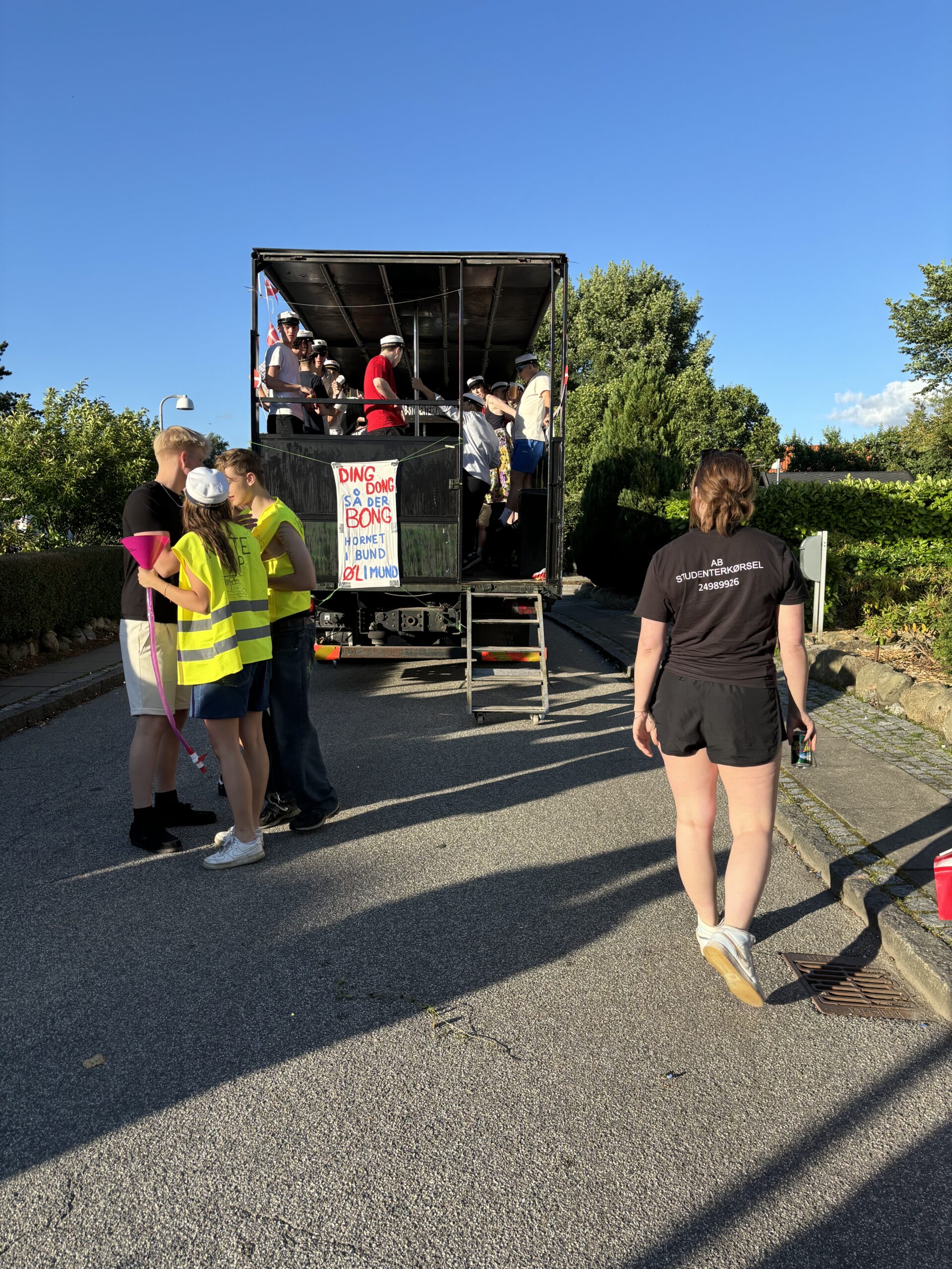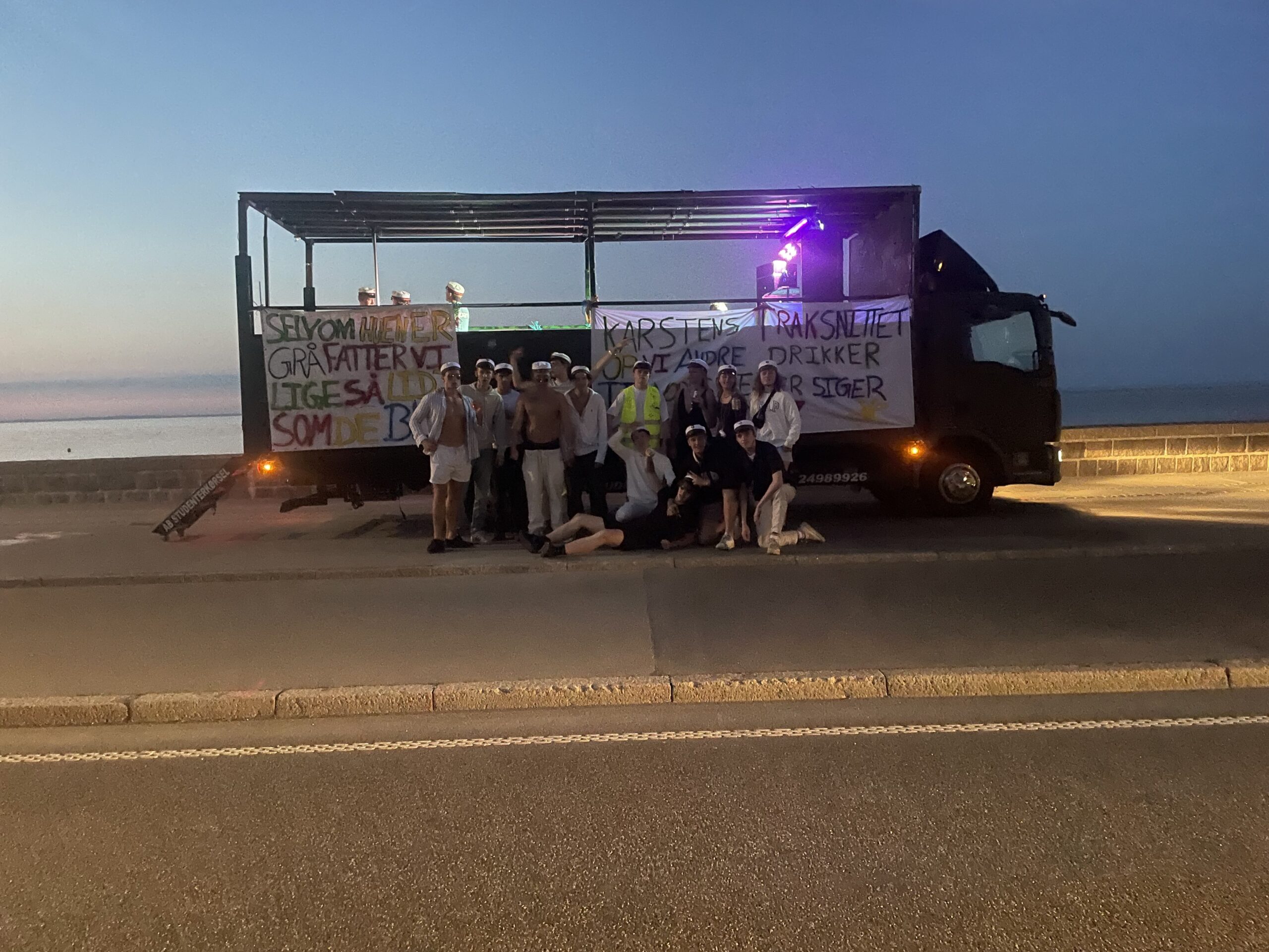 Vores studentervogne er egnet til fest, og bygget på en sådan måde, så du trygt kan hoppe, danse og fyre den af. Alle vores studentervogne er sikkerhedsgodkendt og synet. Vi sørger naturligvis altid for, at chaufføren overholder sine regler og krav for kørsel med personer på ladvogn. Vi har hos AB Studenterkørsel kun ét mål – At i får en uforglemmelig tur i trygge og fantastiske rammer.