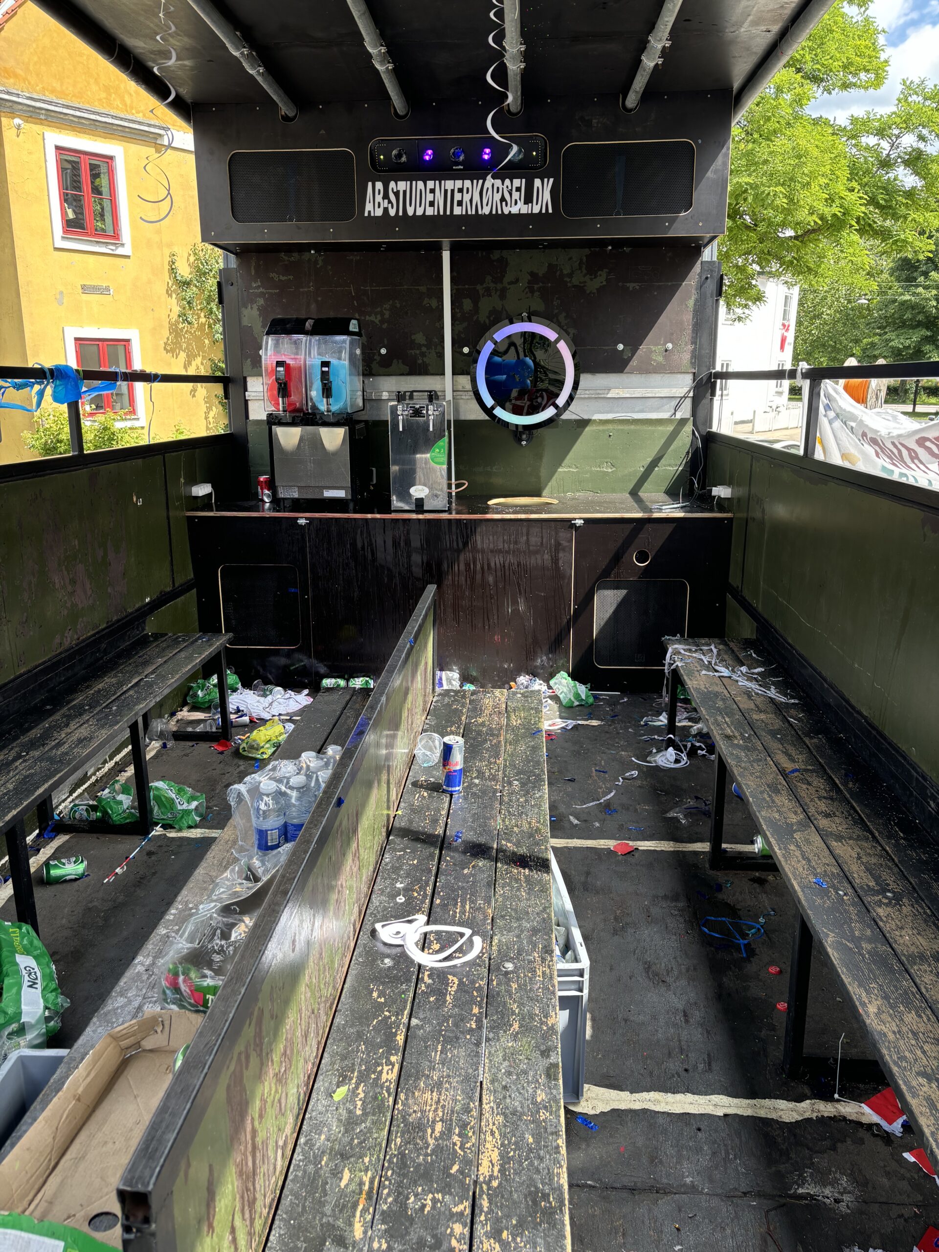 Når du har fået tilpas med alkohol, så studenterhuen danser, kroppen bliver kvalmende og opkasten presser på, så kan det måske være svært at vente til næste stop. Hos AB Studenterkørsel skal du ikke tænke over kedelige ekstraregninger for rengøring, opkast og øl i lange baner. Når du betaler for din studentervognstur, så er rengøring inkluderet i denne pris. Det mener vi er god service, og samtidig sikrer vi, at vores kunder ikke modtager en ubehagelig efterregning. Nemt ikke?